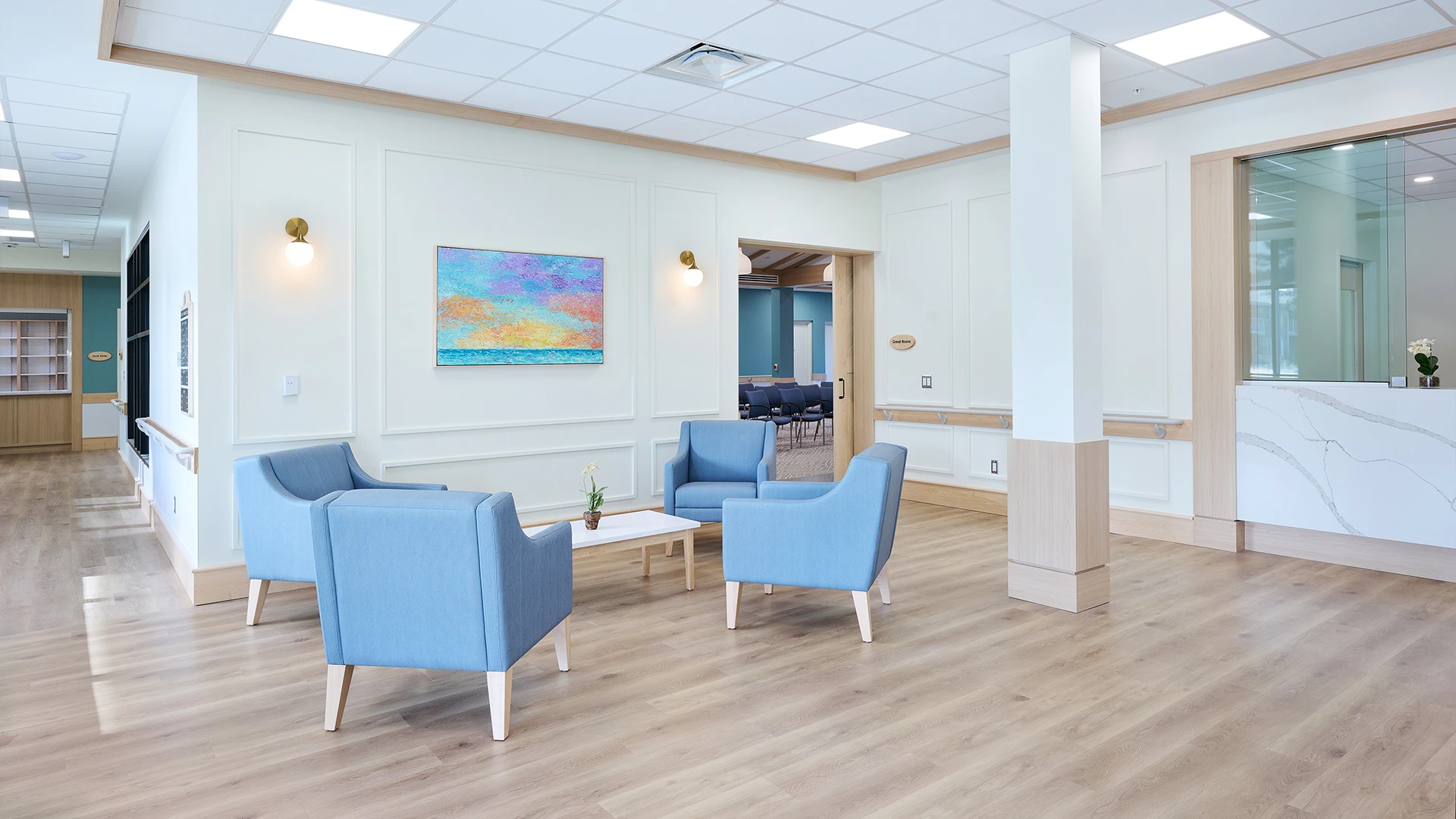 MMMC was pleased to collaborate with Radiant Care on the redevelopment of Pleasant Manor LTC in Virgil, Ontario.  The design reflects Radiant Care’s core values of love, respect, quality, excellence, faith, community, empathy, accountability and leadership.